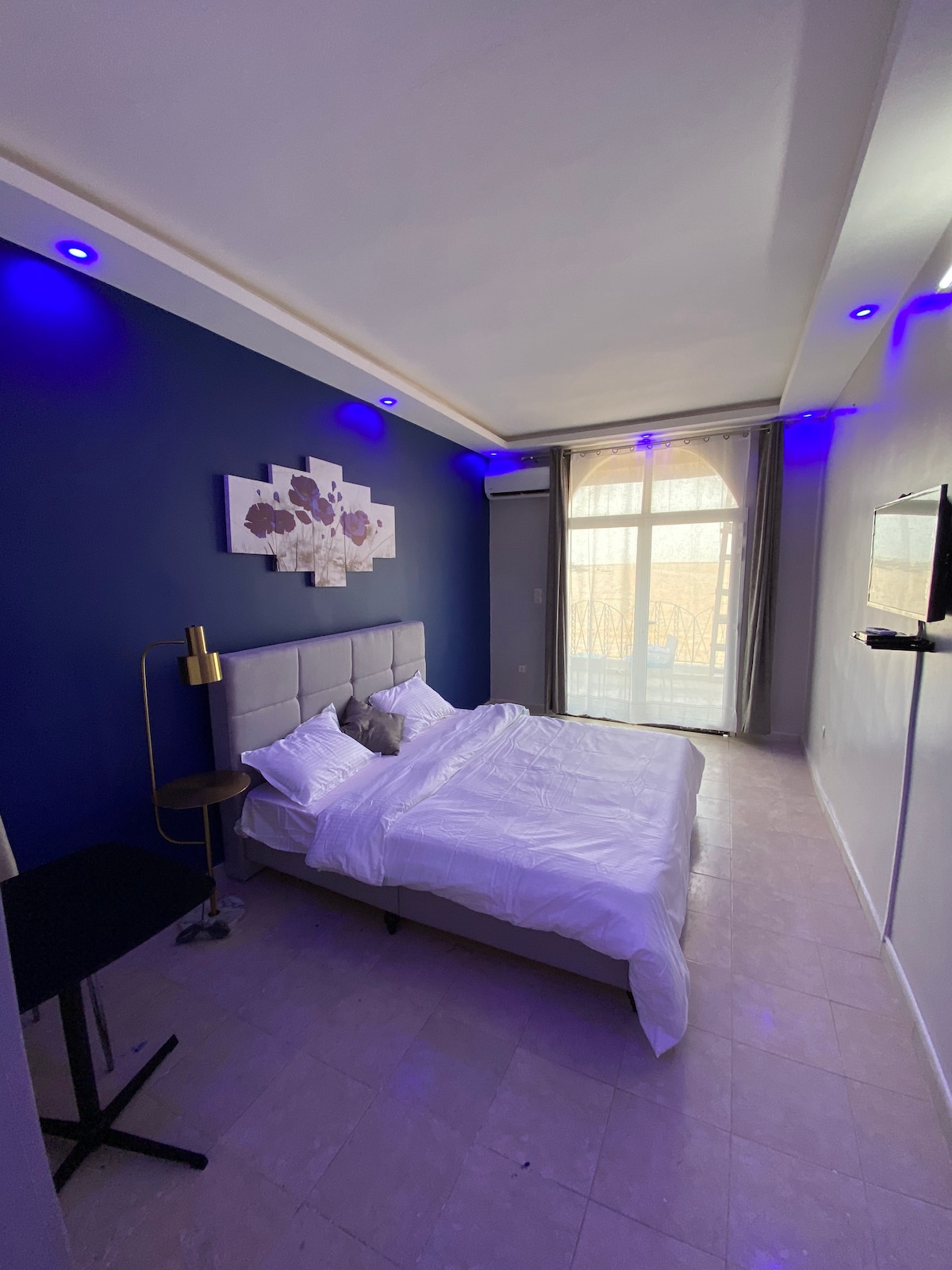 La Résidence Pierrely vous offre la possibilité de vous loger confortablement chez l’habitant, dans le quartier calme et sympathique d’Eaux-Claires, situé à 3 Km du centre-ville, accessible en 10 min en voiture et 30 min à pied. Elle met à votre disposition un magnifique studio doté d'une chambre privée à lit double, entièrement meublé et équipé pour rendre votre séjour paisible et agréable à Saint-Louis du Sénégal.