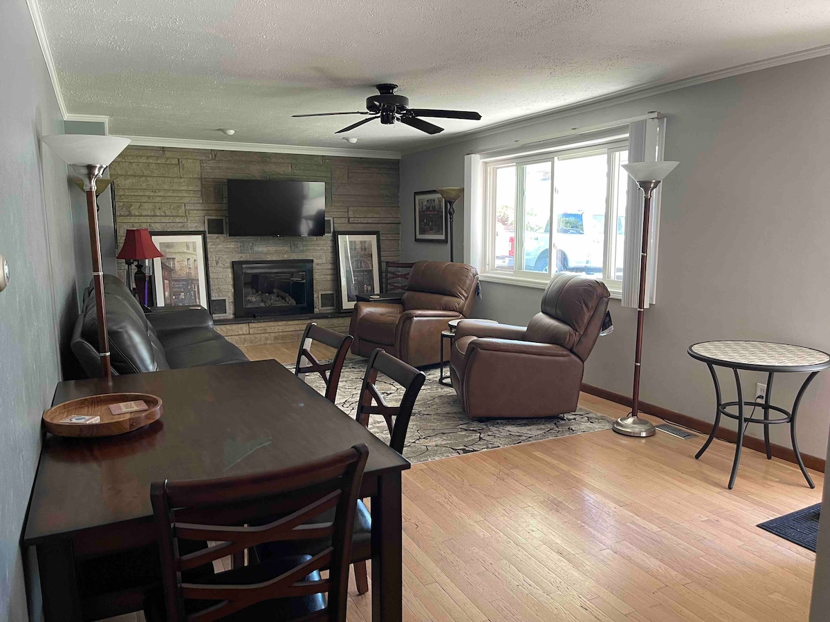Charmante maison nichée sur les sentiers Greenway dans le Winona Lake historique, IN. Entièrement rénovée en 2017 avec un espace de vie confortable. À distance de marche/vélo de la plage, du parc, de l'aire de jeux, de la pataugeoire, des courts de tennis, du terrain de basket, du terrain de volleyball, des commerces et restaurants de The Village, du Grace College. Beaux couchers de soleil depuis la plage ! Parfait pour les couples, les aventuriers en solo, les voyageurs d'affaires, les petites familles, les escapades en VTT, le ski de fond, les week-ends de football américain à Notre Dame, etc. !