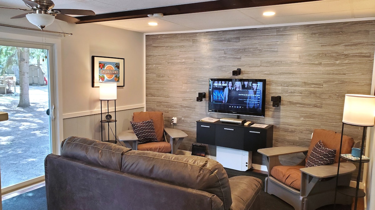 Chalet moderne 🌊 privé au bord d'un lac Sauna baril 🧘 pour 6 personnes pour se détendre 🚤 Paddle et kayaks inclus Salon 🔥 confortable avec cheminée et table de billard 📍 À 15 minutes de Sleeping Bear, 20 to TC Animés par Catered Stays Rentals, nous créons l'expérience idéale pour les voyageurs. Profitez de kayaks et de paddleboards saisonniers (de mai à septembre) ainsi que d'espaces confortables pour vous détendre à l'intérieur comme à l'extérieur. Parfait pour les familles, les amis ou les animaux de compagnie pour se détendre et se faire des souvenirs.