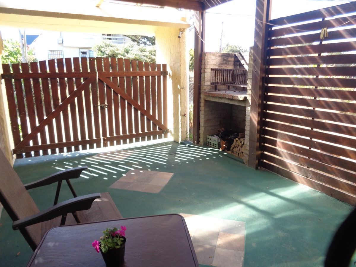 Espacio creado con amor para que disfrutes con comodidad y calma. Frente a la ruta; en calle intermedia y hacia el fondo, no llegan ruidos del tránsito. Entrada independiente. Cochera. Patio sin división pero con zona exclusiva para huéspedes; la anfitriona usa su patio lateral y frontal; garantiza privacidad. Lavarropas compartido Almacén a media cuadra; demás servicios a tres. Acceso a diferentes playas en pocos minutos. Hay una perra muy mansa y dos gatos huidizos de quienes no conocen.