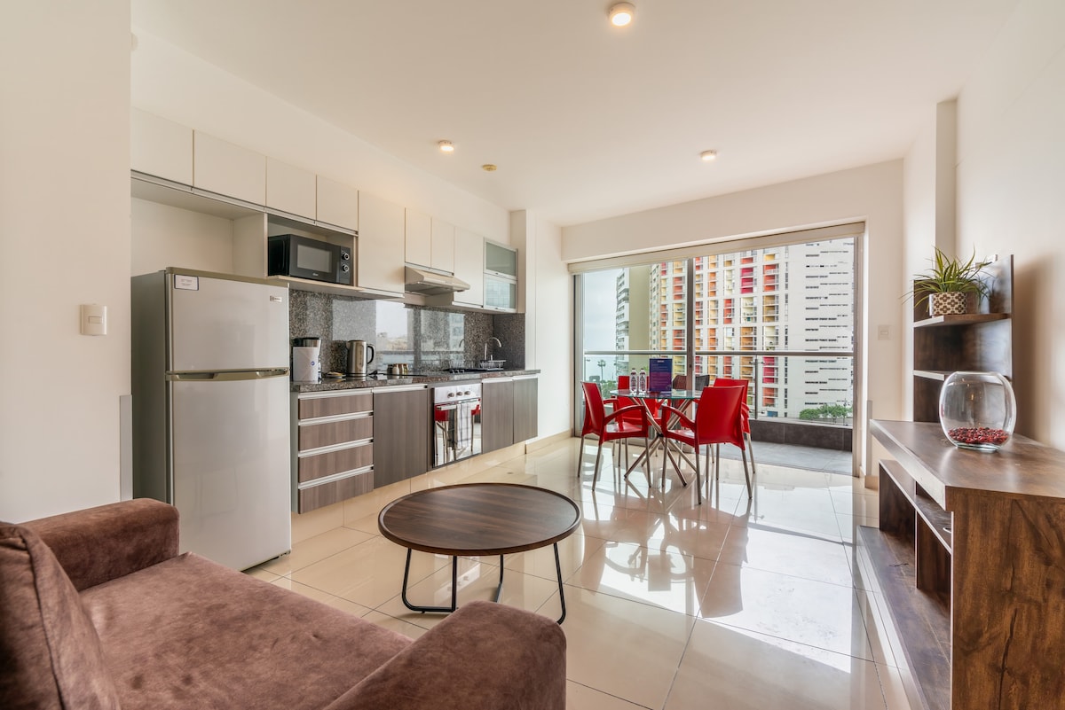 This welcoming, upscale, 1 bedroom apt with AC-heater, super comfortable king size bed, private terrace, ample closet space, strong and stable Wifi and Netflix is the perfect home for your longer stays. It's location, in a quiet street, 3 blocks from the boardwalk and 5 blocks from Larcomar, is superb for going out on a walk or jog. There are plenty of close-by grocery stores, convenience stores, restaurants and gourmet spots to meet all you cooking and and take-home needs.