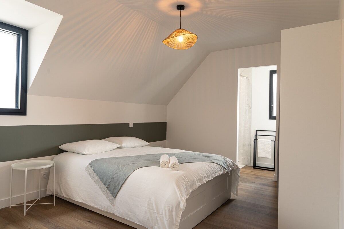 Maison moderne et cosy, parfaite pour un séjour entre amis ou en famille, à deux pas de Vannes et du Golfe du Morbihan. Avec ses quatre chambres, chacune dotée de sa salle d'eau privée, elle garantit confort et intimité. Sa cuisine entièrement équipée et son salon lumineux créent une atmosphère conviviale. À l'extérieur, un espace détente idéal pour se relaxer après une journée d'exploration.