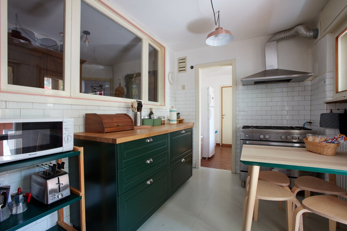 Cet appartement unique et original a été rénové avec amour et soin. Une combinaison parfaite d’éléments nouveaux et anciens crée une atmosphère chaleureuse et accueillante. Le grand salon est un endroit spécial pour se détendre après une journée bien remplie. Le point fort de l'appartement est la belle terrasse en bois exposée au sud, idéale pour profiter du soleil. En tant que propriétaires, nous prenons grand soin de chaque détail et nous nous engageons à une communication personnelle avec nos clients.