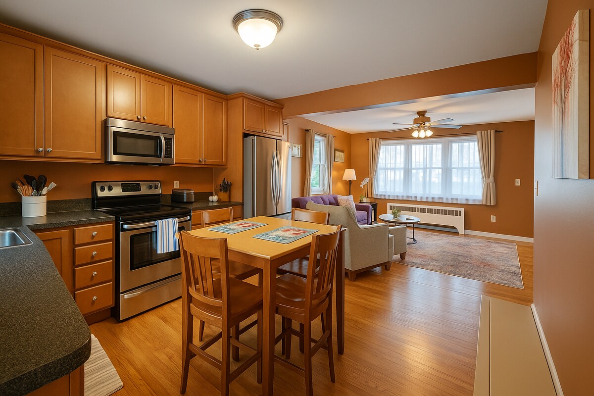 Bienvenue dans votre boutique retraite au cœur du centre-ville de Troy ! Ce confortable studio au deuxième étage, conçu par une artiste locale, est niché dans une maison de transport indépendante avec une entrée privée à côté d'une fresque fantaisiste de l'artiste locale Kayla Ek, et une cour luxuriante inspirée de la Nouvelle-Orléans. À quelques pas des meilleurs restaurants, de l'art, de la vie nocturne et des lieux de mariage de Troy, et à moins d'un pâté de maisons de l'approche RPI, ce joyau est parfait pour une escapade romantique, une escapade en solo ou un séjour élégant lors de votre visite de la région.