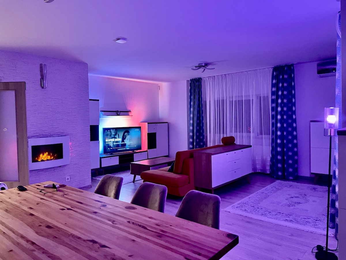 Un studio moderne et raffiné, conçu pour ceux qui apprécient la tranquillité, la discrétion et le confort dans un espace exclusif. Situé dans un quartier calme et isolé, le studio offre un accès sécurisé par carte à la barrière du complexe et un parking privé inclus. En seulement 5 minutes en voiture, vous pouvez rejoindre le centre-ville ou le marché de Noël, et une promenade relaxante de 20 minutes vous emmène directement au cœur de Craiova. La gare et l'aéroport international ne sont qu'à 5–10 minutes.