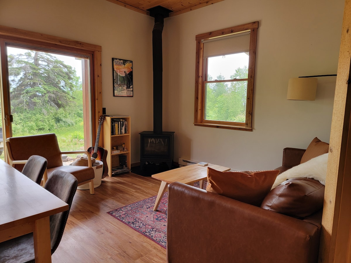 Offrez-vous un séjour de luxe dans cette cabane calme et nouvellement construite avec des baies vitrées, un porche avec moustiquaire et un sauna en tonneau. Profitez de longues journées et couchers de soleil à Corny Beach, à 10 minutes de marche de la cabane le long d'un sentier naturel. Visitez Bayfield à 20 minutes ou admirez la petite ville excentrique de Cornucopia, puis rentrez chez vous et prenez un sauna dans cette forêt paisible ! La cabine a une limite d'occupation de 2 adultes et un chien (frais pour animaux de compagnie de 50 $). Une planche de PADDLE est stockée près de la plage pour les voyageurs en été.