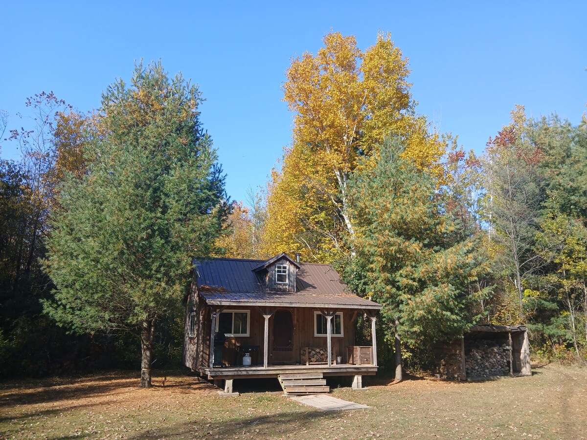 Cabin is partially OFF GRID in winter months (Nov 1-May 7) No running water/shower/indoor bathroom at this time. Water is provided with water dispenser/maintained outhouse Sauna & jacuzzi tub available yr round. Note: Wood hot tub replaced in 2025 with jacuzzi spa Cabin heated by wood stove in the winter months and supplemented with a mini split heater. Firewood/kindling provided Cabin situated on heavily treed 1 acre property with a creek directly in front of a quiet municipal road