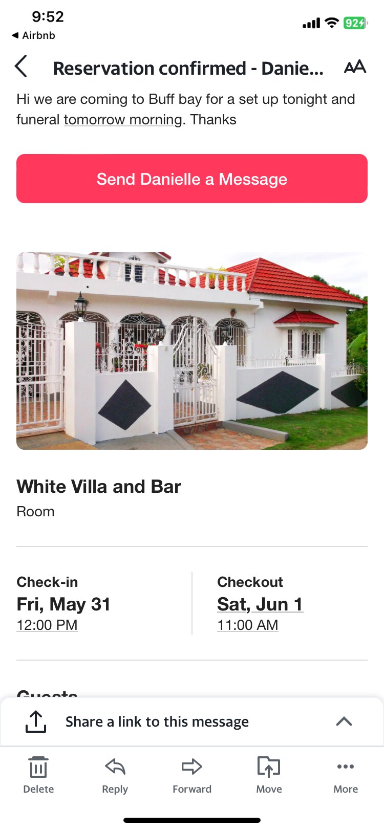 Coooozzyy. Cet espace est parfait pour les clients qui cherchent à se détendre après une longue journée d'aventures à Port Antonio. Il se trouve à cinq minutes en voiture de la plage voisine, que l'on peut voir sur les photos. Il est également à 5 minutes de la ville de Port Antonio où vous pouvez vous rendre aux restaurants, aux centres commerciaux, etc. Vous pouvez littéralement vous tenir debout dans l'allée et prendre un taxi pour aller où vous voulez. De plus, notre chienne Hillary et son fils Obama l, elle est inoffensive. Une fois que vous lui aurez donné un bon bain de ventre, vous pouvez lui faire la journée.