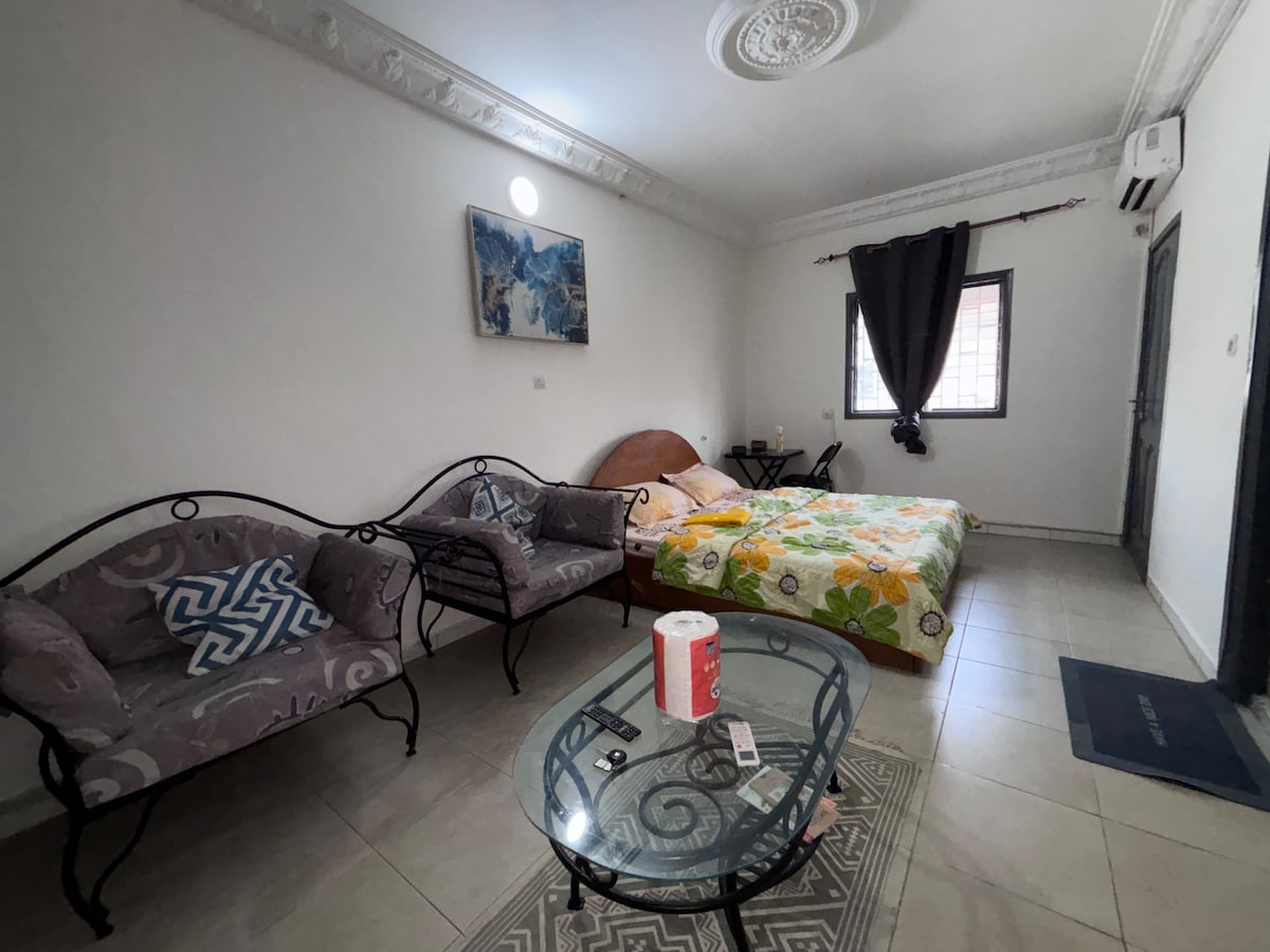 Beau studio sécurisé avec gardien de jour et de nuit.Accès facile Rez de Chaussée avec ouverture sur une petite terrasse. il dispose d'un grand écran de 55 pouces, un coffre fort, une enceinte Bluetooth avec un son de qualité Harman/kardon, un lave-linge, un fer à repasser , Robot aspirateur , assistant Vocale connecté , purificateur d'air et autres équipements. Le sol de la chambre est vêtu d’un parquet flottant