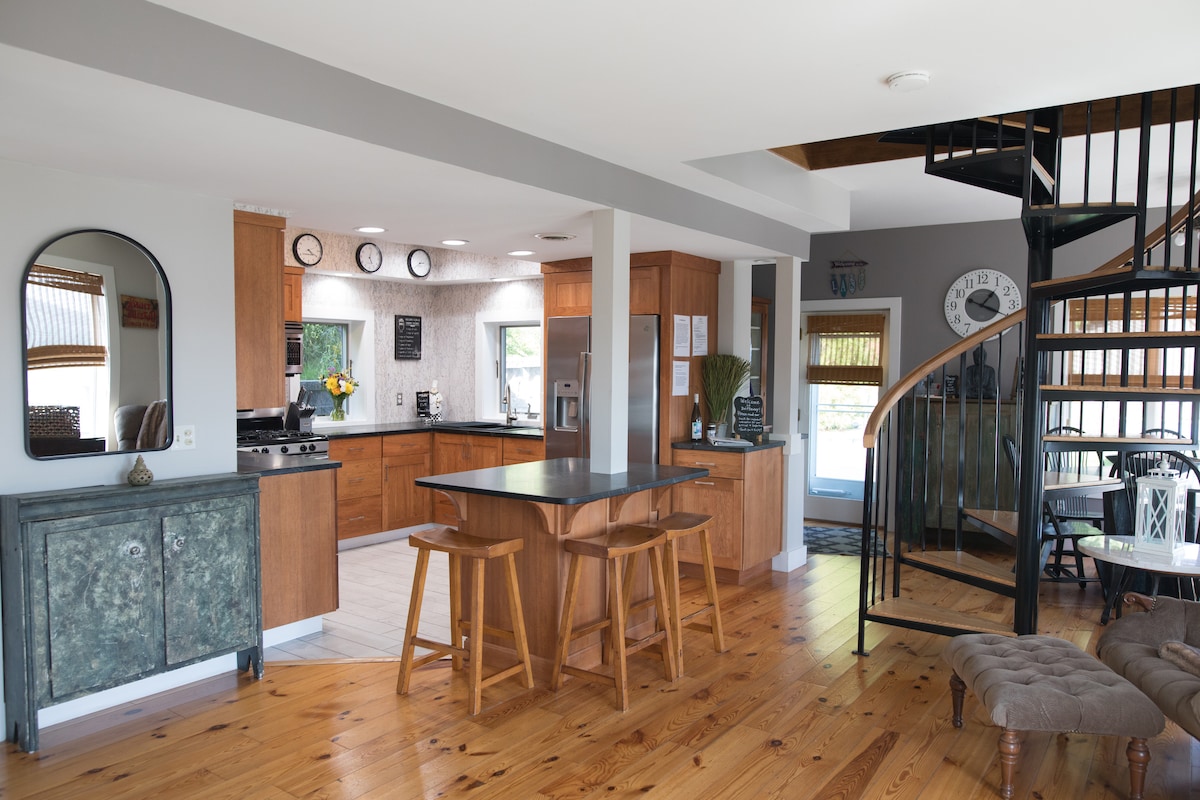 Évadez-vous à la campagne dans le charmant « Timber View ». Entourée de vignobles et d'une beauté pittoresque, cette retraite de campagne offre une escapade paisible pour ceux qui cherchent à se déconnecter et à se ressourcer. Réveillez-vous au son de la nature, dégustez votre café du matin sur le porche et passez vos journées à explorer la région des Finger Lakes avec des activités telles que la randonnée, la visite des marchés de producteurs locaux ou tout simplement profiter de la tranquillité de la vie rurale. Le soir, rassemblez-vous autour du foyer pour écouter des histoires et observer les étoiles.