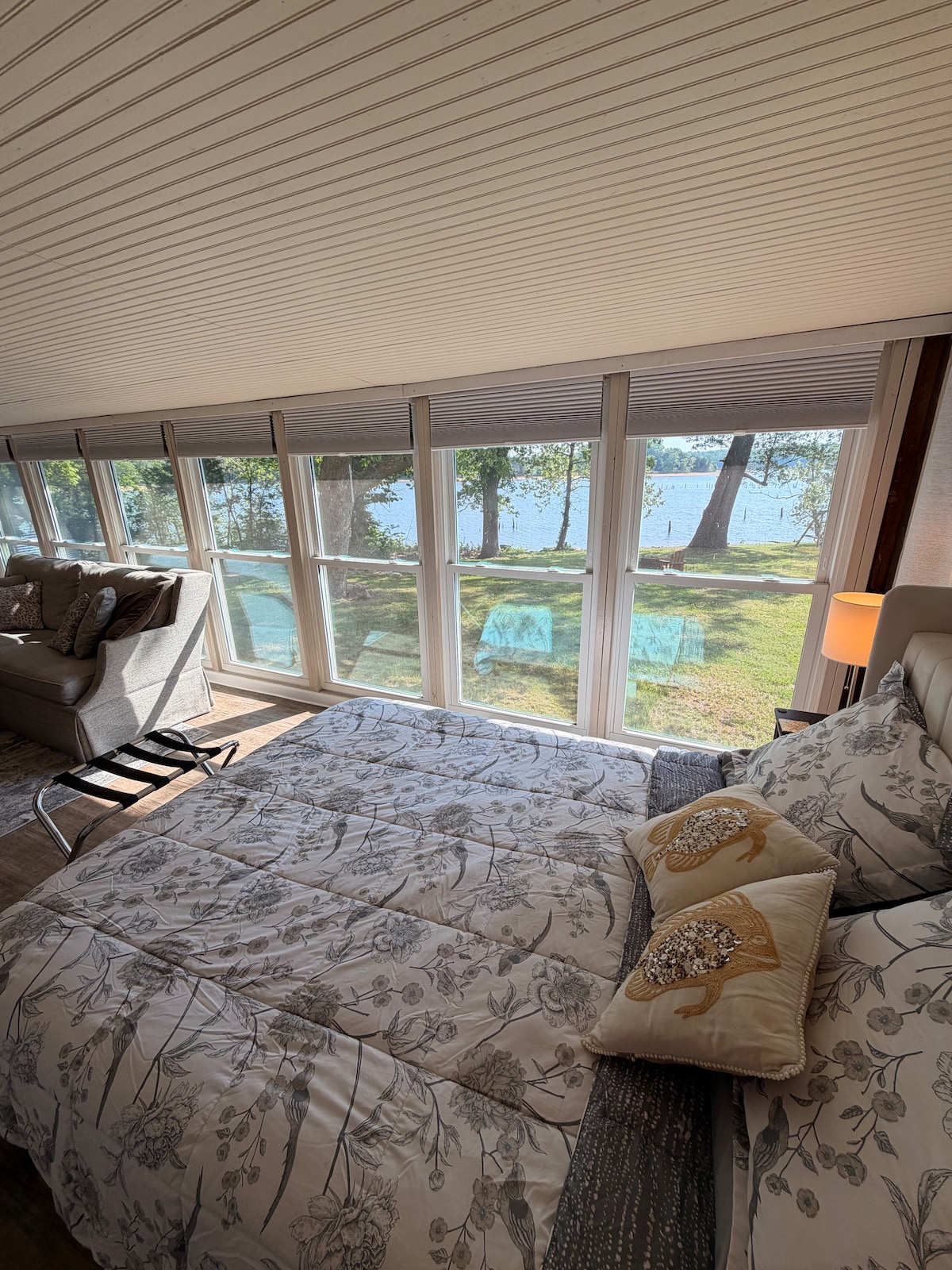 Now is the time of year to enjoy the lake! Take it easy at this unique and tranquil getaway. Cabin on beautiful Lake Charles! Lake views on 3 sides. Great lake for fishing, boating and kayaking. Located at the end of a dead end road, this quaint cabin has 1 Bedroom, 1 Bath and an equipped kitchen. Nice deck overlooking the lake. Enjoy evenings by the fire pit. Near Shirley Bay/Rainey Brake Wildlife Area for duck, deer & turkey hunters Only 5 minutes drive to Lake Charles state park.