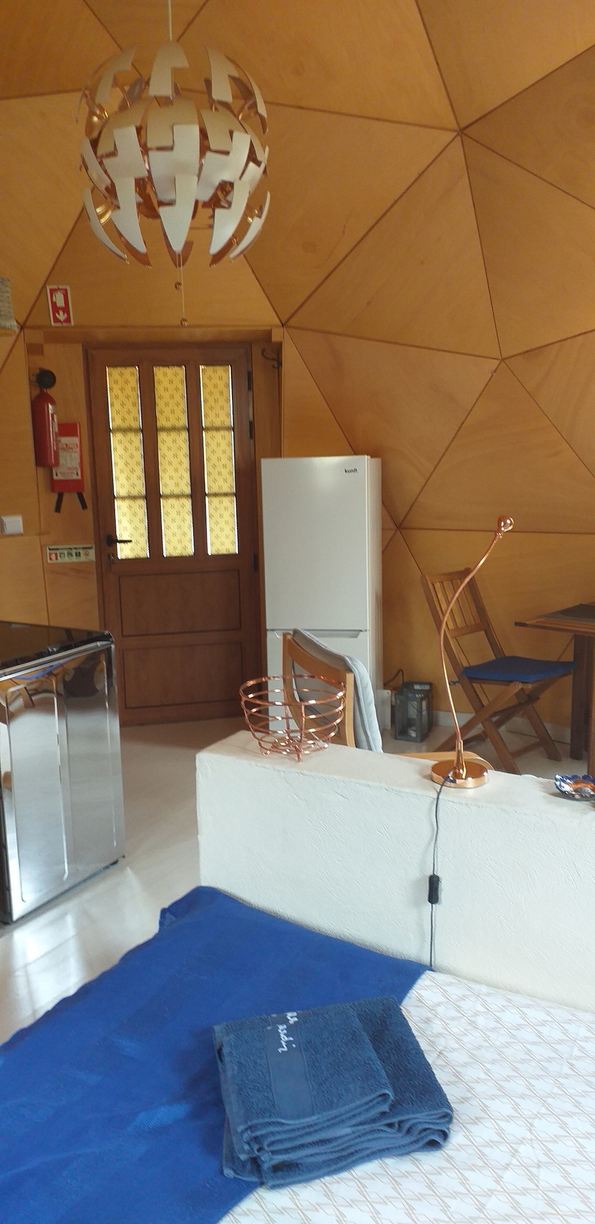 Un excellent endroit pour se reposer et se ressourcer dans une forêt de chênes à Covas dans la Serra d'Arga. Le dôme dispose d'une cuisine extérieure équipée et d'une salle de bains avec douche extérieure à quelques mètres. La SALLE DE BAINS est PRIVÉE, même si ça semble différent dans un commentaire précédent. Dans la région, il y a plusieurs lacs naturels et des sentiers de randonnée. Les plages de Moledo et de Caminha sont à 30 minutes. Pour 25,-, vous pouvez louer une sauna sous tente.