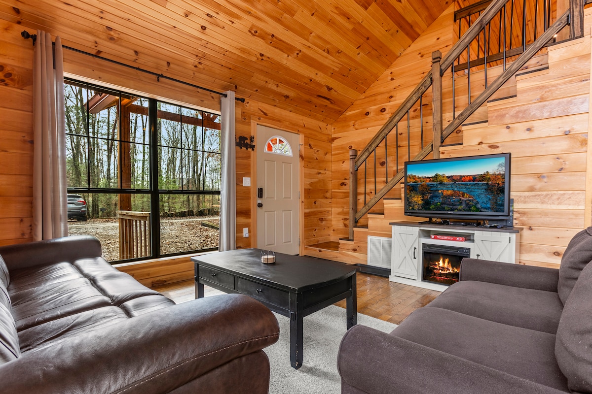 Peaceful woodland cabin perfect for couples seeking a romantic retreat near Red River Gorge. Wake to soft morning light through the trees, sip coffee on the deck, and unwind after exploring in the hot tub or by the fire pit. Enjoy the cozy interior, wraparound deck, wildlife sightings, and stargazing at night—all just minutes from great restaurants, shops, scenic trailheads, waterfalls, and iconic Gorge adventures. Thoughtfully designed for comfort, reconnect, recharge, and slow down together.