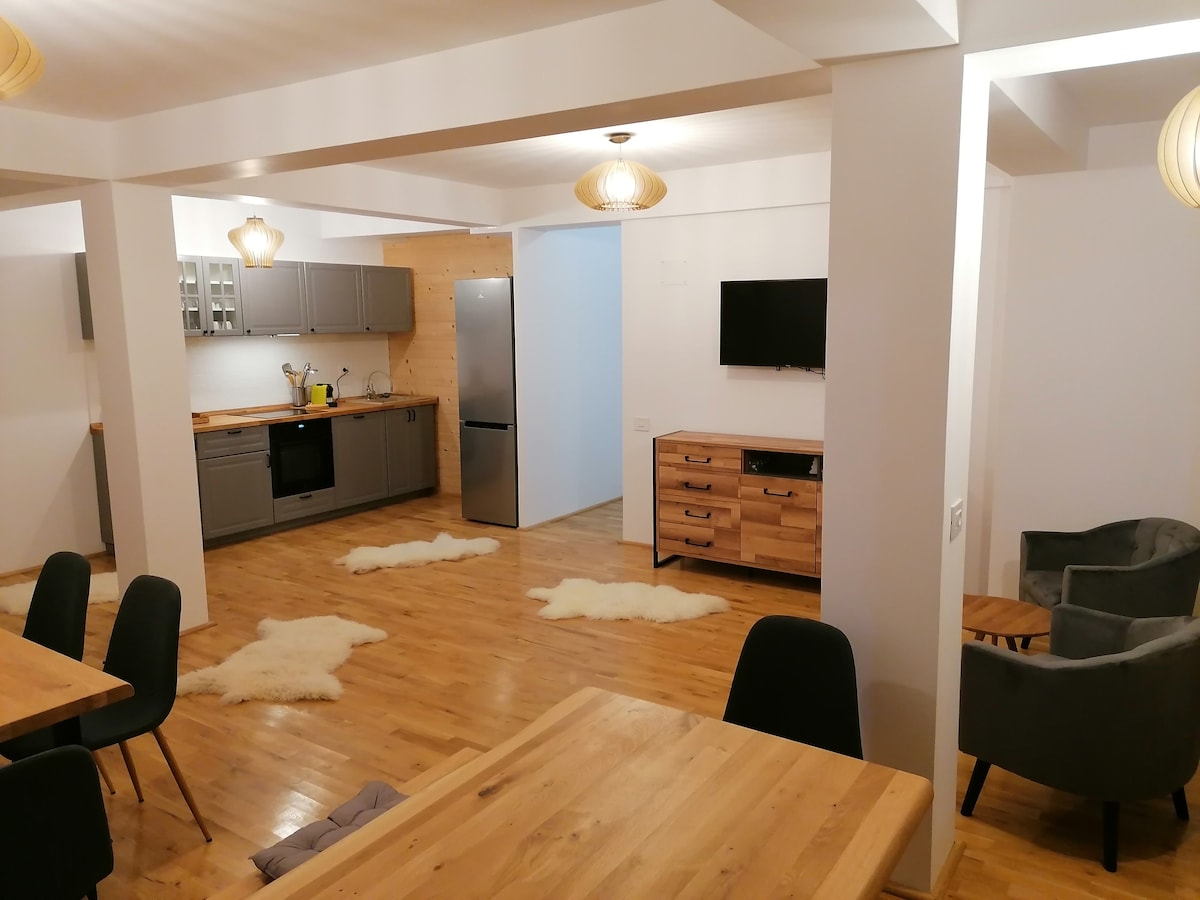 Au coeur des Carpates, dans l'une des meilleures stations de ski de Roumanie, notre loft apporte au voyageur un sentiment de chaleur et de paix. Il est à seulement 10 minutes du centre ville et de la gare, et à 15 minutes de la pente du ciel. Les planchers et plafonds en bois, habituels à l'architecture locale, donnent à l'appartement une sensation élevée, vous plongeant dans l'ambiance de la montagne.