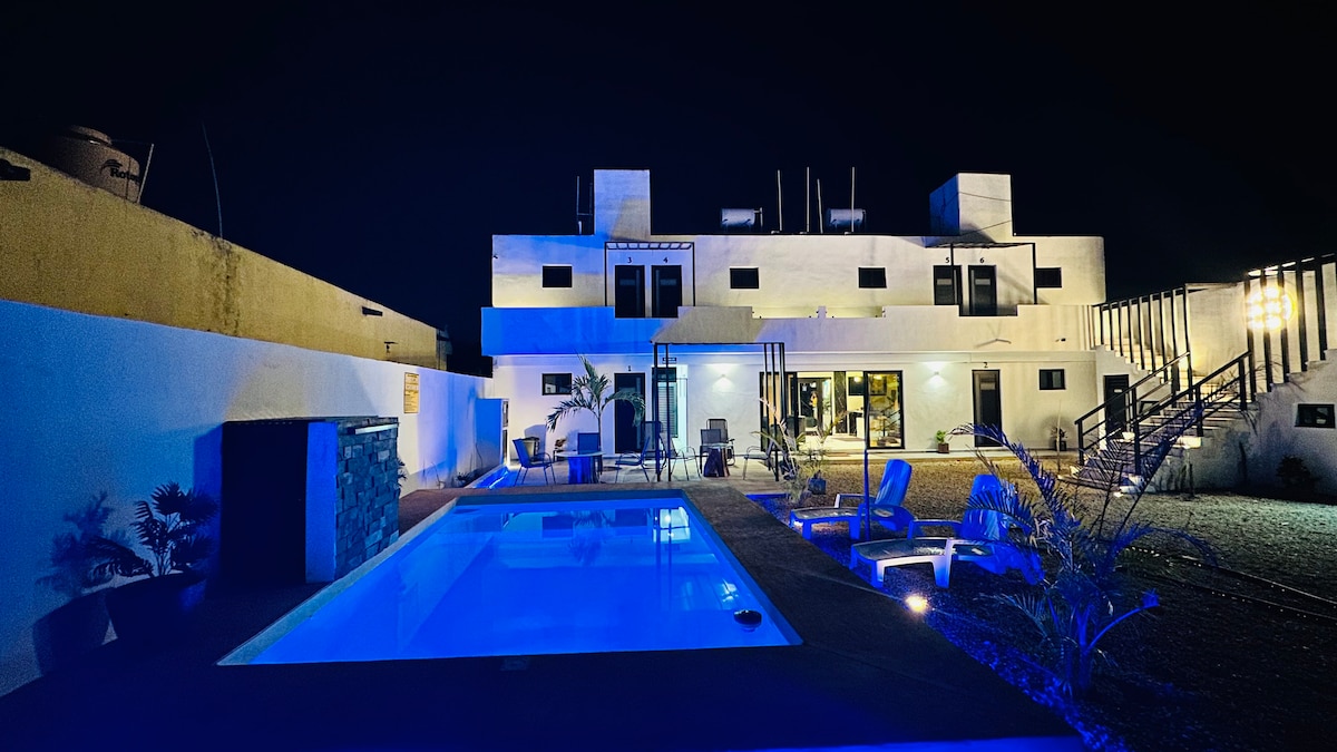 Découvrez l'essence de Mérida dans une vieille maison restaurée avec des murs de pierre et un style boho-natural. Détendez-vous dans votre jardin privé avec piscine exclusive, profitez d'un lit double avec des vêtements de qualité, de la climatisation, d'une Smart TV et d'une connexion Wi-Fi. Situé sur l'emblématique rue 60, à proximité du Paseo de Montejo et des cafés locaux. Parfait pour les couples et les voyageurs à la recherche d'authenticité, d'histoire et de confort moderne.