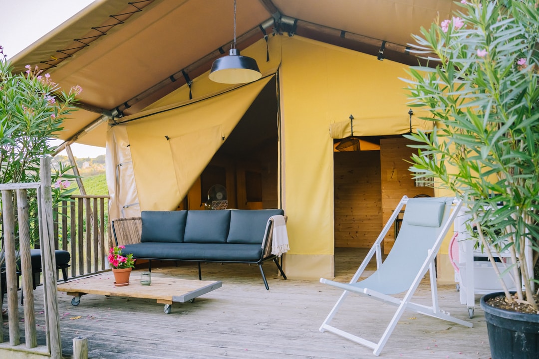 Pour une expérience glamping ultime, le camping propose une tente cloche 2 personnes joliment meublée, parfaite pour ceux qui aiment le camping, mais avec style et sans chichis.