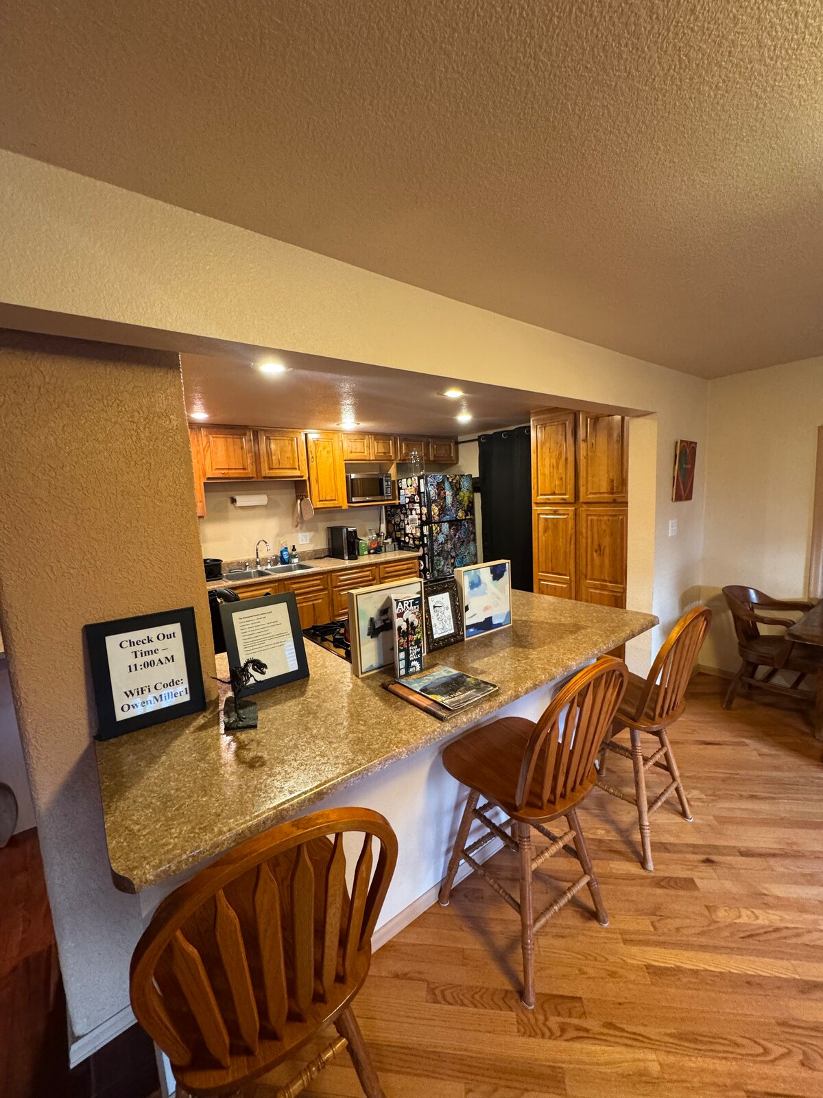 This comfortable house has been updated to include some unique features that will take you back to Colorado's history from the 1859 Pikes Peak Gold Rush to the days of the railroad. We have 3 bedrooms - the cowboy room, the railroad room, and the Master Suite with its tasteful decor featuring southwest art from local artists. The kitchen is fully stocked and you can park in the 2-car garage. Plus we have added a large hot tub to the back patio and a privacy fence.