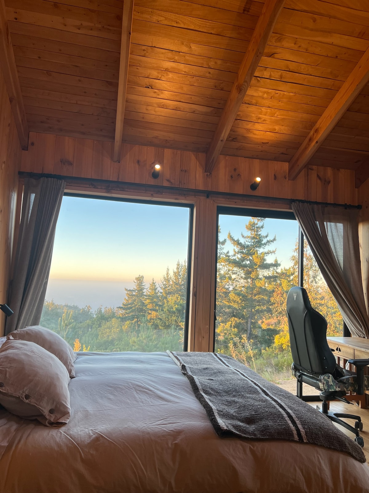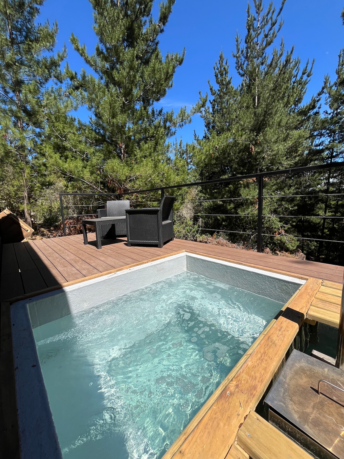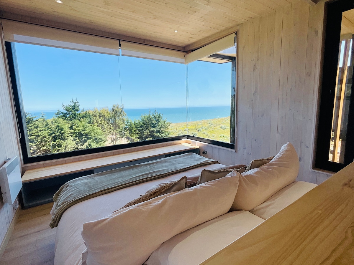 Cabaña para 2 personas rodeada de bosques, ideal para una escapada en busca de tranquilidad y desconexión en la naturaleza, con noches mágicas bajo las estrellas. Cuenta con Hot Tub privado disponible 24 horas en la terraza, Wifi, Smart TV, sábanas y toallas, parrilla a gas, Bosca, leña, cocina completamente equipada (vajilla completa, refrigerador, microondas, horno eléctrico, hervidor, tostador, cafetera francesa), parlante bluetooth y estacionamiento privado. A 15 minutos de Puertecillo.