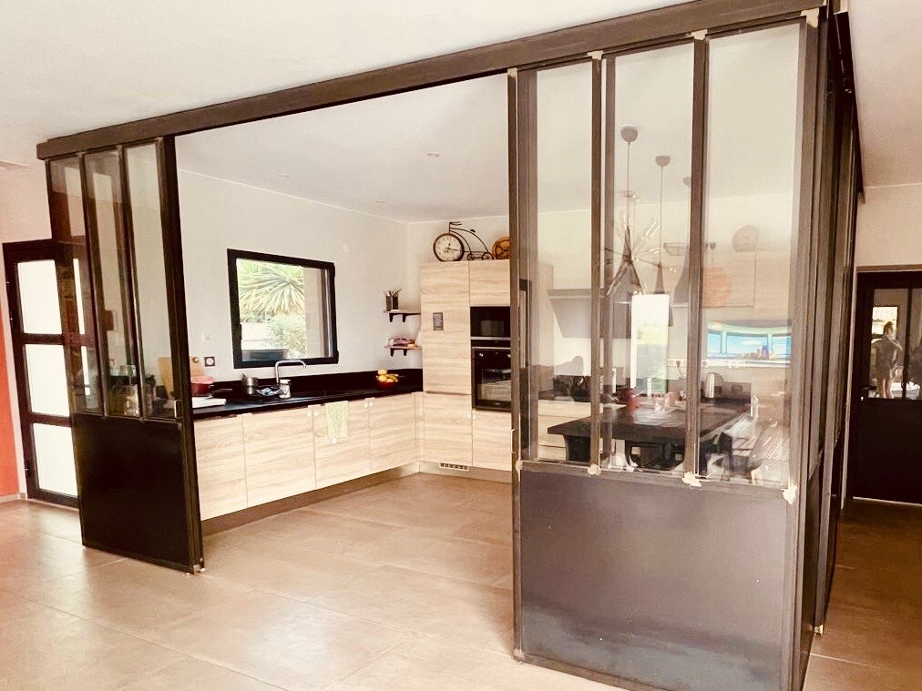 Loft de 110 m2 composé de deux chambre avec lit double 160x200 (drap et serviette fournie), salle d'eau , salon, salle a manger. La cuisine propose tous les équipement nécessaire ( micro ondes réfrigérateur congélateur four plaque a induction lave vaisselle cave a vin ) cour extérieure avec petit coin bar évier plancha coin détente avec transat au bord de la piscine privée chauffée et sécurisée sans vis a vis. entre mer et montagne. Plages 20min. les fetes et le tapage nocturne sont interdit