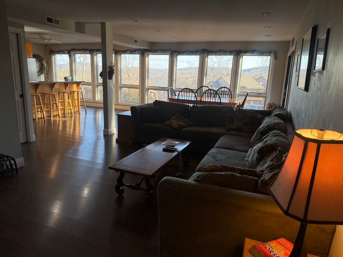 L'une des plus belles vues sur le lac niché dans la forêt nationale de Daniel Boone. Spacieuse maison de 4 chambres avec coin nuit au sous-sol avec matelas taille Queen en mousse à mémoire de forme. Grand jacuzzi sous un porche couvert et situé dans un complexe hôtelier privé et sécurisé avec plusieurs piscines, courts de tennis, sentiers pédestres/VTT, le tout à moins de 1 mile de la rampe de mise à l'eau. Nouveaux meubles et téléviseurs dans chaque chambre, salle de jeux au sous-sol avec bar/table de poker, jacuzzi dans la chambre principale. Vue imprenable sur le lac depuis chaque pièce ! Excellent WiFi pour travailler.