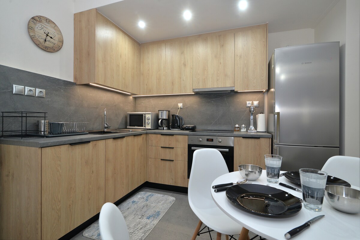Appartement moderne et ensoleillé de 47 m² dans le centre de Leptokarya, à 10 minutes de la mer et à 5 minutes de la gare. Idéal pour les familles ou les professionnels, avec entrée indépendante, terrasse, téléviseurs intelligents, cuisine entièrement équipée et salle de bain avec lave-linge. Base idéale pour l'Olympe, les sites archéologiques et les villages traditionnels.