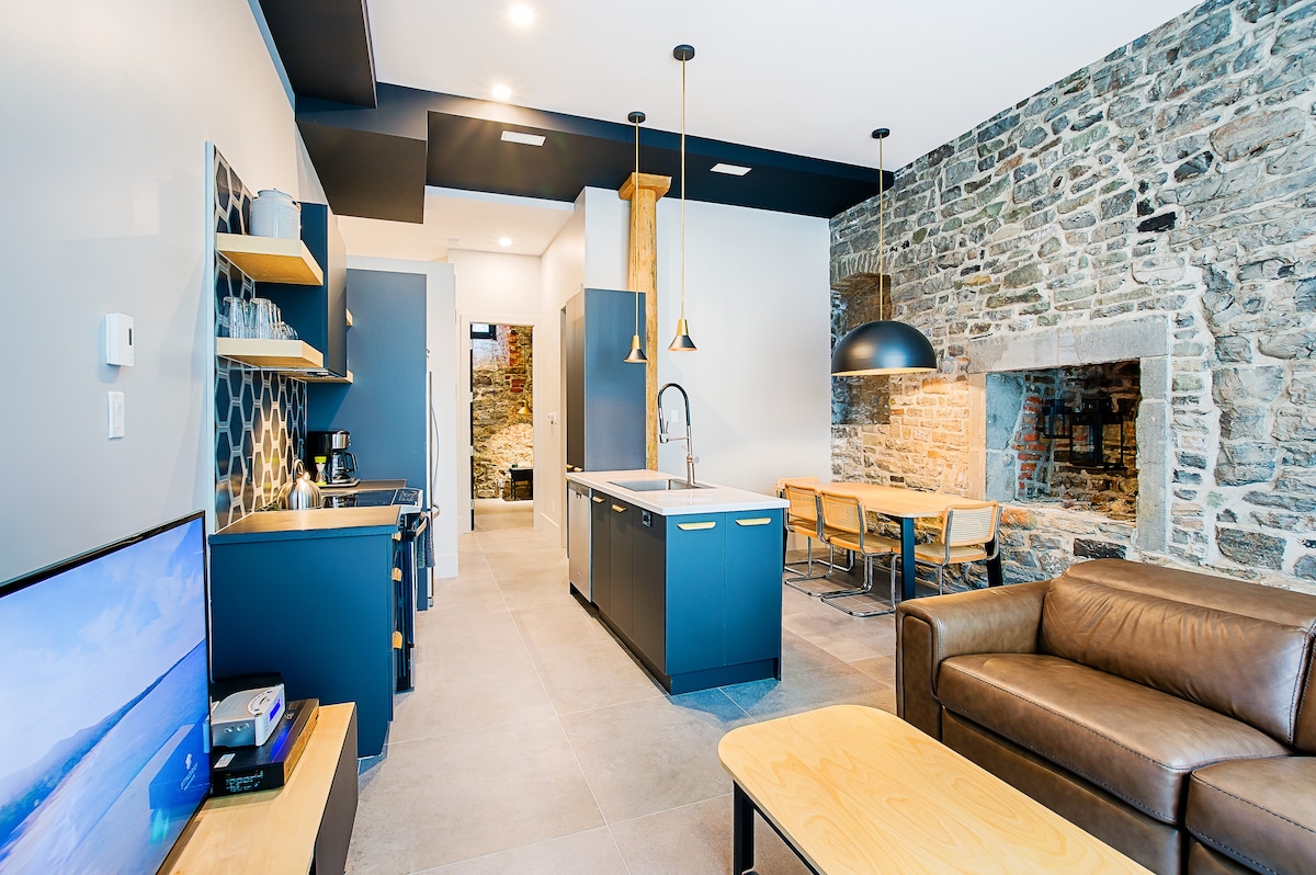 | Ceci est une catégorie de cinq appartements similaires. Le logement peut différer de ce qui est montré | VIP: Vacances Immersives Prestigieuses. Vivez des vacances luxueuses en plein coeur du Vieux-Québec. Les appartements entièrement rénovés du 31 McMahon relient leur quartier historique avec la modernité, les besoins d'aujourd'hui et plus encore. Un complexe luxueux avec service hôtelier connecté (self-check-in) avec simplicité et confort. Profitez d'un quartier vibrant et plein d'histoire.