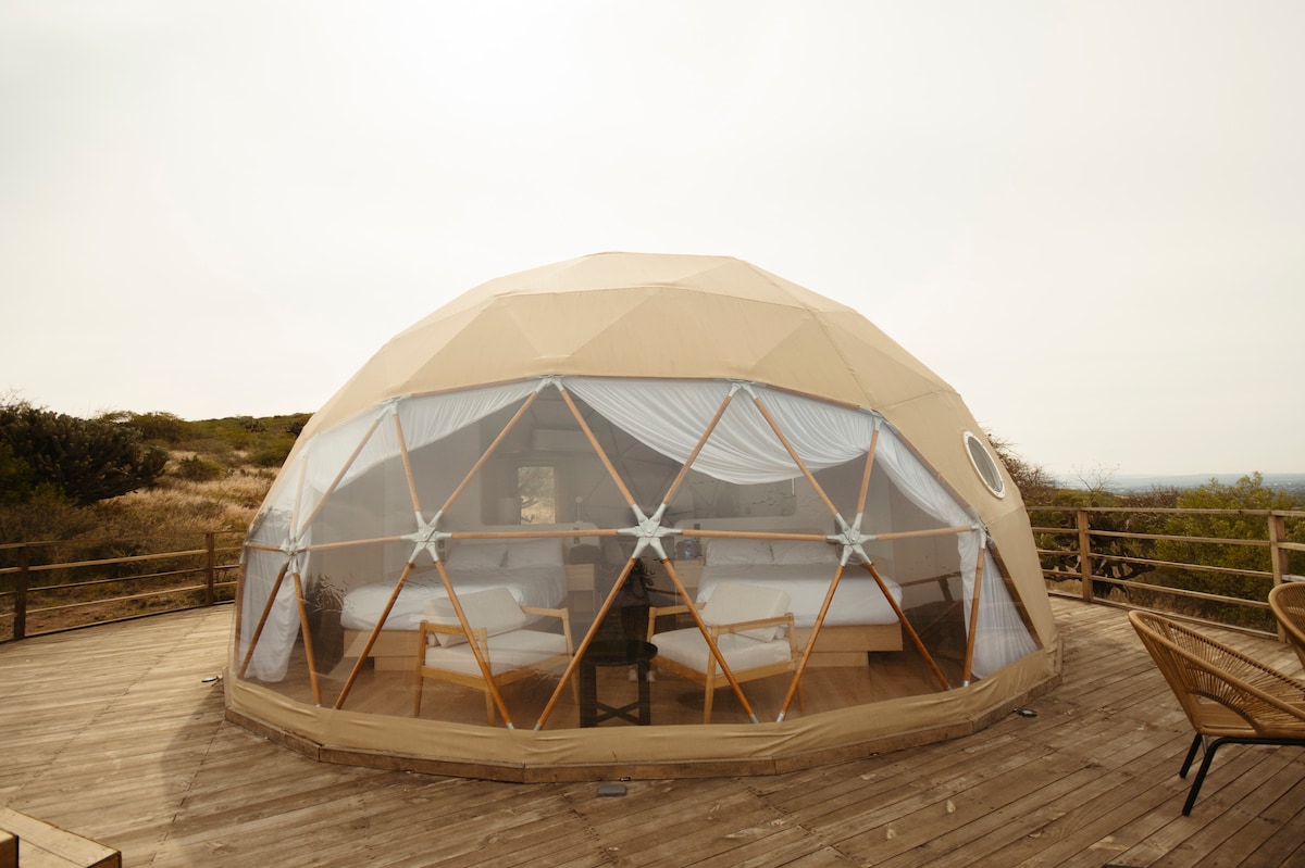 HOOGA glamping sont les premiers dômes géodésiques situés dans le barrage de Zimapán (à 1:45hrs de Querétaro) entourés par la nature semi-désertique que nous offre le lieu. Chaque dôme est pour un couple ; il dispose d'une salle de bain à l'intérieur, d'une terrasse avec cuisine équipée et rôtissoire pour pouvoir vous préparer un délicieux repas en appréciant la vue sur le barrage. Vous pouvez également effectuer différentes activités nautiques et explorer tout ce qui vous entoure.