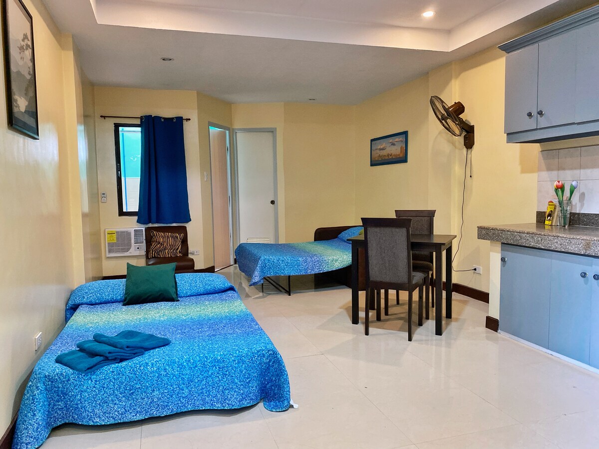 Value for money clean room with kitchen, Smart TV w/netflix and high speed internet connection. Our Place is nearest to shopping malls, School for board exam,711 and walking distance to city proper and we have free parking space area.