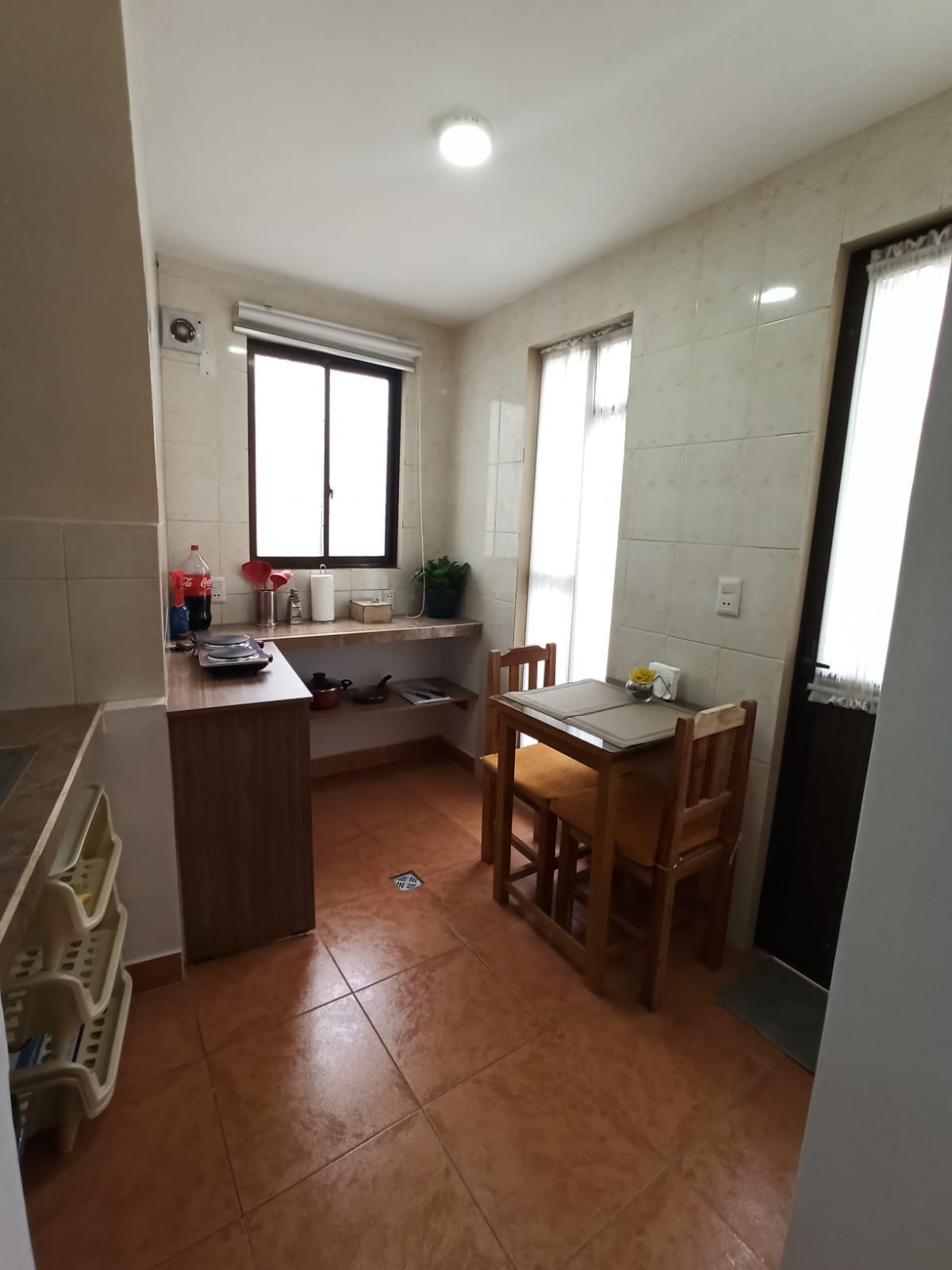 Apartamento privado en segunda planta con acceso independiente por gradas dentro de la propiedad. Espacio de concepto abierto de uso exclusivo para el huésped, una habitación tipo suite, cocina y baño privado y 2 amplias terrazas para relajarte al atardecer. 📍 UBICACIÓN ESTRATÉGICA: 🚌 A 5 min de la Terminal de Buses. 🚶 🚕 A 8 min de la Plaza Principal. (Taxi) 🚏 Transporte público a 2 cuadras. ✅ CERCA A: Restaurantes, Farmacias, bancos y canchas de tenis/pádel. 📌 PLUS: Check-in flexible.