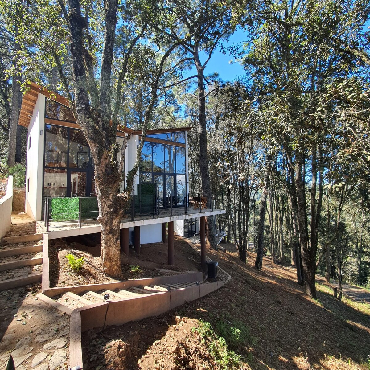 La Cabaña Turemsa está localizada en el Pueblo Mágico de Mazamitla, Jalisco, es una hermosa suite tipo loft completamente equipada en el medio del bosque, rodeada de antiguos encinos, hermosas vistas y aire puro dentro del exclusivo Fraccionamiento Paso del Ciervo, en Mazamitla Jalisco. Su diseño con grandes ventanales y acabados de lujo, harán de tu estancia una experiencia inolvidable para reconectar con la naturaleza.