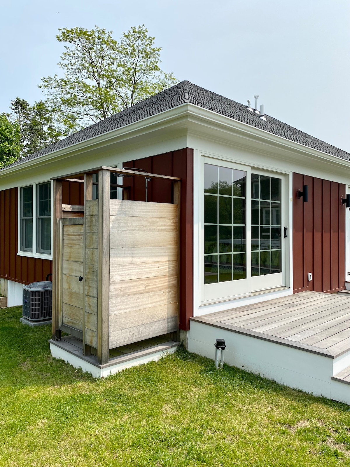 Chalet moderne des Hamptons avec intérieur moderne du milieu du siècle, notre chalet de 3 chambres et 2 salles de bain est situé sur un terrain bien entretenu et parfaitement équipé pour votre séjour. Piscine chauffée en gunite (mois d'été seulement) avec couverture rétractable, vélo Peloton et climatisation centrale partout. Cuisine récemment rénovée avec appareils électroménagers haut de gamme, grande terrasse extérieure parfaite pour recevoir avec un nouveau gril Weber. Allée privée pouvant accueillir 4 voitures. 4 vélos pour adultes. À 8 min en voiture du village de Southampton. À 15 min de Coopers Beach.