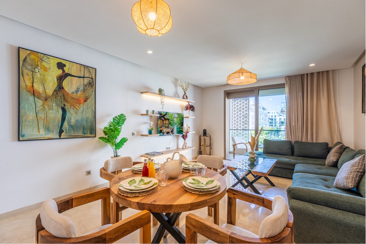 Appartement confortable Boho 2BR / Vue sur le jardin et la piscine