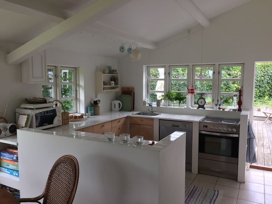 Dans la belle ville de Rågeleje, cette maison d'hôtes unique est située dans le jardin de la soufflerie de verre de Rågeleje, dans un environnement calme. C'est la maison principale d'origine, qui a été rénovée avec la mer et la lumière à l'esprit. La maison est lumineuse et ensoleillée la majeure partie de la journée, vous pouvez ouvrir les portes de la terrasse et vous lever au chant des oiseaux. La maison d'hôtes est située à moins de 100 mètres de la plage, d'où vous pourrez admirer les couchers de soleil les plus spectaculaires le soir.