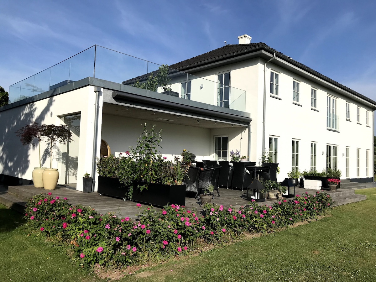 La maison à louer est la maison principale d'une propriété de campagne de 4 ailes. La maison dispose de 8 lits, d'un accès à une plage privée, d'un grand espace extérieur avec deux belles terrasses, avec vue sur la baie d'Ebeltoft et les champs verdoyants, des vélos, des kayaks et un trampoline peuvent être utilisés librement, télévision avec de nombreuses chaînes. Il y a un lecteur Bluetooth, un lave-vaisselle, une machine à laver. À 2 km de l'épicerie locale, à 3 km de la poissonnerie. Le parc national Mols bjerge et le phare de Sletterhage sont accessibles à vélo. 60 km d'Aarhus et 15 km d'Ebeltoft.