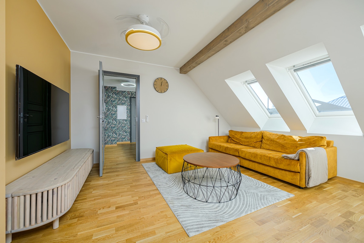 One-bedroom penthouse in a small apartment building, in the center of Kohila village. Quiet area. Spacious living room can be used as a second bedroom. Suitable for a family vacation away from the hustle and bustle of the city. 2 shops and a river nearby. Swimming pool, children's park and fitness trail within walking distance. Bus station 400 m, train station 650 m, dog park 300 m. Pets are welcome!