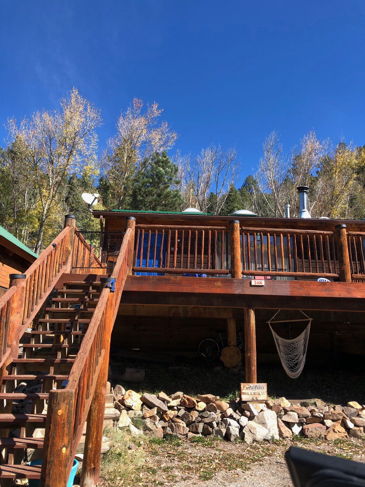 Cher voyageur, je travaille dur pour que cela ressemble à une maison loin de chez moi. Grand porche devant et derrière, devant il y a un peu de soleil. Cabane confortable à distance de marche de tout le charme de la rivière Rouge, des pistes de ski, de la randonnée, des jeeping, des salles de concert, pas de franchises ! Tout ce dont vous avez besoin pour vous sentir chez vous. Entouré de montagnes et de nature. Grande cuisine, salon encastré. Belle salle à manger avec une vue. Peut accueillir six personnes mais parfaites pour 4 personnes. Beaucoup d'extras. Lave-linge/sèche-linge pleine grandeur également. Profitez-en !