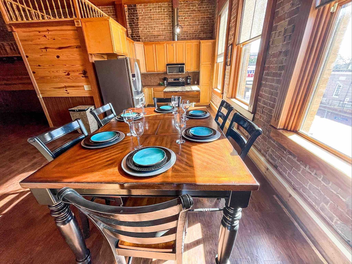 Découvrez l'élégance de notre loft historique du centre-ville. Avec des intérieurs magnifiquement restaurés et décorés, cet espace de détente dispose de plafonds de 12 pieds et d'une atmosphère sereine. Profitez de la commodité d'être proche de tout, ce qui facilite la planification de votre voyage. Promenez-vous tranquillement tôt le matin dans les rues historiques pendant que la ville dort, puis retournez au loft pour une tasse de café rafraîchissante. Sortez pour découvrir un éventail dynamique de magasins d'antiquités, de boutiques, de bars et de restaurants.