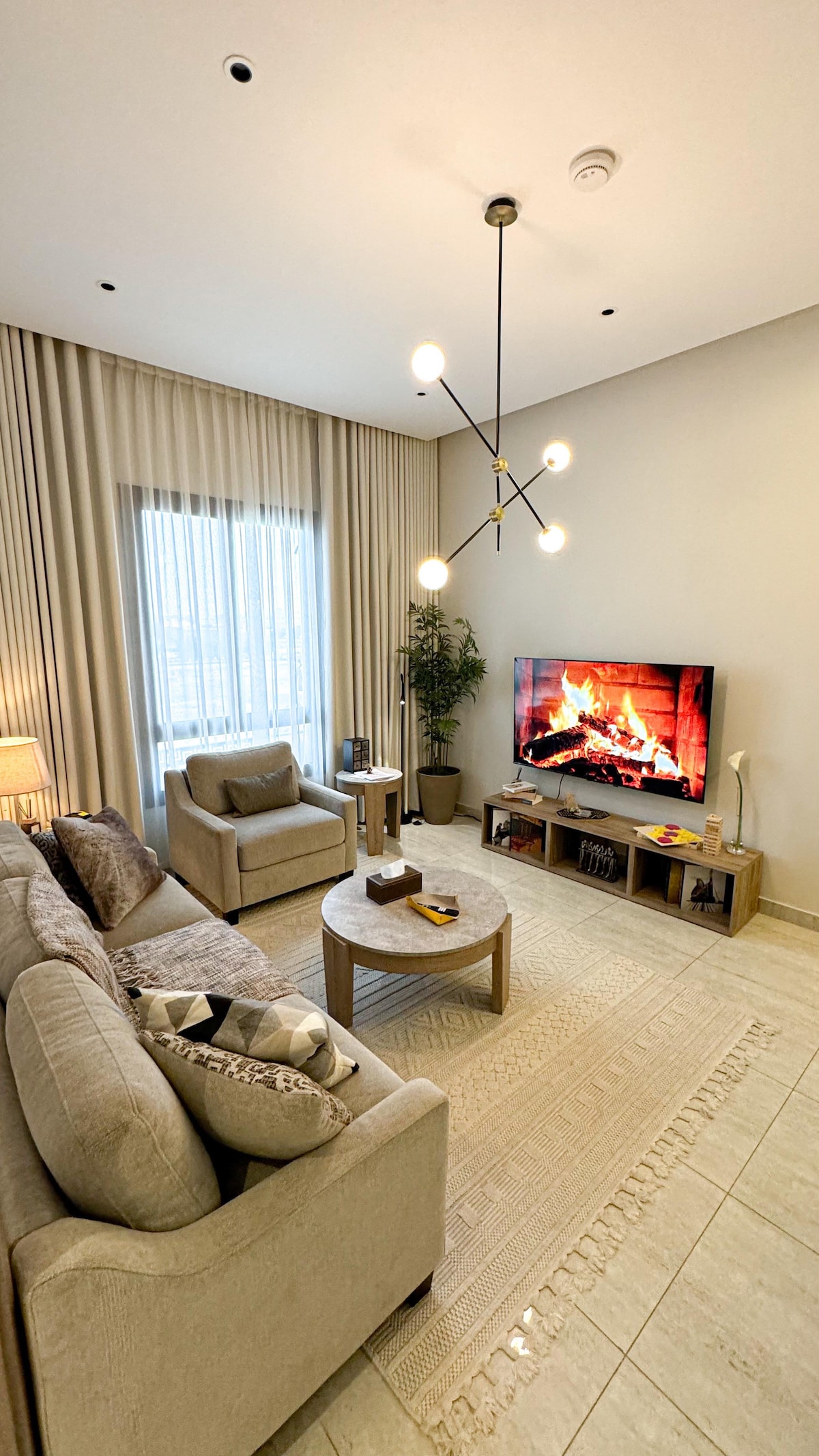 Confortable 1-BR à Rawda : lit Queen, TV 65", arrivée autonome