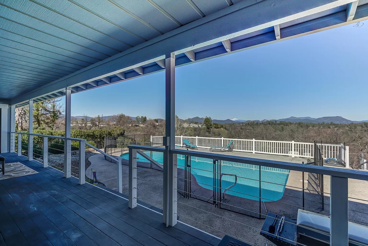 This is a bright, 2,400 sq ft home on the hillside with breathtaking views of Shasta, Burney, & Lassen. You watch the sunset on Mt. Shasta while floating in the HEATED pool (excluding mid Oct - April) (addnl fee to heat pool upon request). 65" TV for movie nights. A fully stocked and updated kitchen. The house is close to shops and Bethel in a quiet neighborhood. We have put a lot of care into the details of this home and we pride ourselves in great stays- We look forward to hosting you!