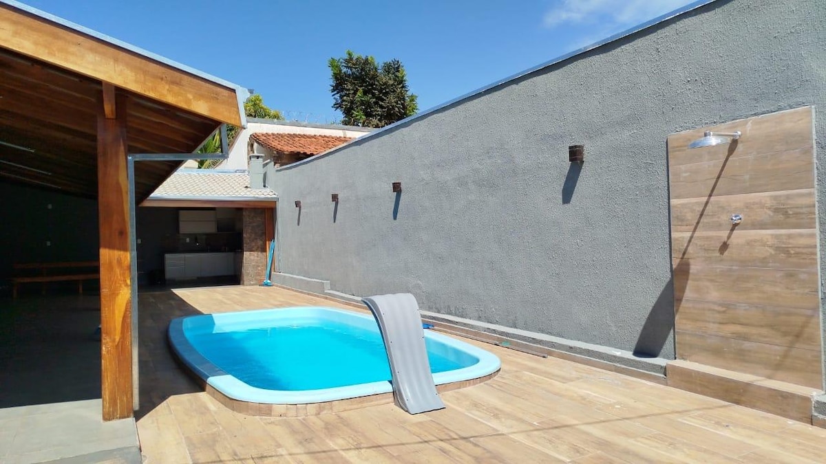 Rancho impeccable, confortable et spacieux pour que vous puissiez profiter et faire ce barbecue le week-end avec votre famille et vos amis ! Piscine avec cascade et jacuzzi, espace gourmet complet avec cuisinière, sucrier, réfrigérateur inverter, brasserie, barbecue, micro-ondes, friteuse électrique, mixeur, ustensiles, SmartTV 55 pouces, table Wi-Fi avec 8 sièges, îlot avec 6 tabourets, 2 tables en bois avec 4 chaises chacune, 1 lit double, 1 lit superposé et 1 garde-robe.