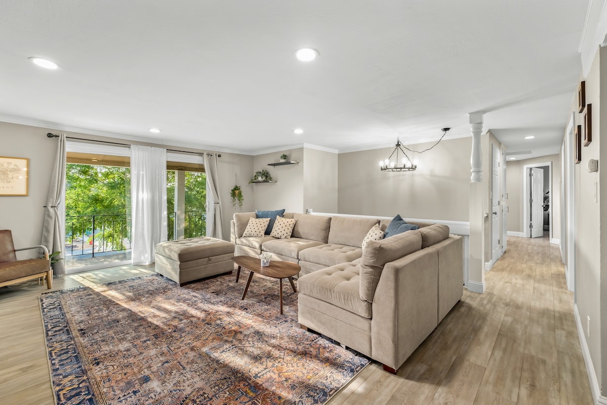 Découvrez la vie de luxe dans notre oasis de Reno ! 🌟 Bienvenue dans votre escapade de rêve au cœur de Reno. Notre spacieux havre de paix nouvellement construit de 4 chambres et 2,5 salles de bain dispose de deux lits king-size, de deux lits queen-size et d'un matelas gonflable queen-size, assurant le plus grand confort pour votre séjour. Savourez des délices culinaires dans notre vaste cuisine, dotée d'un îlot élégant pouvant accueillir 4 personnes. Profitez du confort moderne avec des variateurs de lumière intelligents et restez connecté avec une connexion Wi-Fi ultra-rapide. À 10 minutes du centre-ville et de midtown.