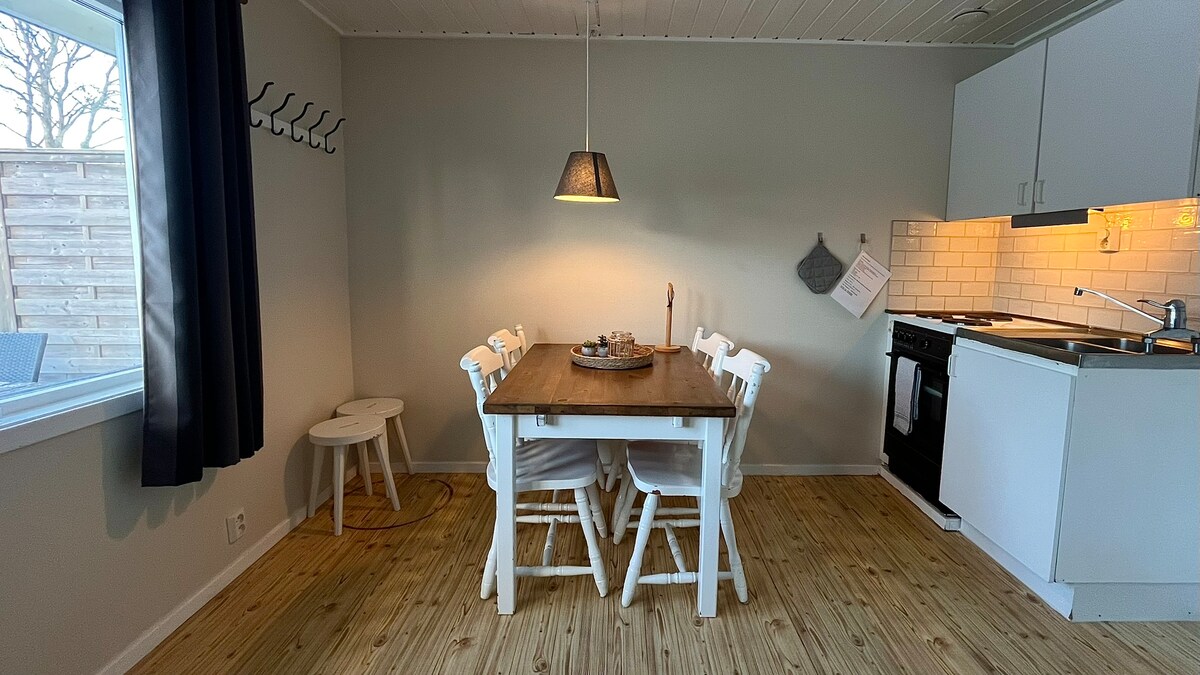 Nous louons notre maison d'hôtes à côté de notre villa . Avec sa propre terrasse ensoleillée isolée, son entrée , son parking privé et son espace barbecue. Mauvais moyen de transport, vous devriez avoir une voiture . Le chalet est situé dans un quartier calme avec un chemin de promenade de 250 mètres vers une belle plage de sable fin et de belles falaises. L'échelle est très difficile à conduire une poussette vers le bas Ici, vous pourrez bronzer, nager et pêcher pendant que les enfants pêchent des crabes. Belles zones de randonnée avec des pistes cyclables et des sentiers forestiers. La région offre une belle nature avec de nombreuses possibilités de détente.