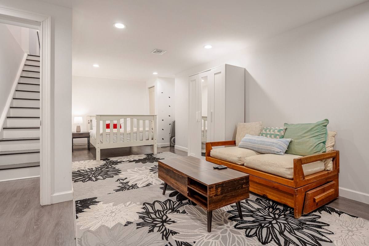 Bienvenue dans notre suite d'hôtes d'une chambre nouvellement construite, l'endroit idéal pour un séjour calme et confortable. Avec sa propre entrée privée et son espace de stationnement dédié, cette suite offre intimité et commodité. À l'intérieur, vous trouverez un lit Queen Size, une salle de bain complète avec des équipements modernes et une machine Nespresso pour bien commencer vos matinées. Situé à quelques pas des transports en commun de New York, il est idéal pour explorer la ville tout en profitant d'une retraite paisible. Nous avons hâte de vous accueillir !