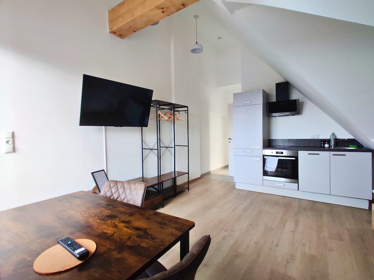 Notre appartement mansardé très calme dans une maison familiale avec un grand lit confortable, un coin canapé et une cuisine offre un sommeil réparateur dans une zone rurale calme. Pour Le lac de baignade avec entrée gratuite est à 10 minutes à pied. Région thermale de Geinberg, Bad Füssing Idéal pour les promenades sur l'Inn (5 min à pied) ou les balades à vélo ! Taxe de séjour 2,40 € par personne/nuit.