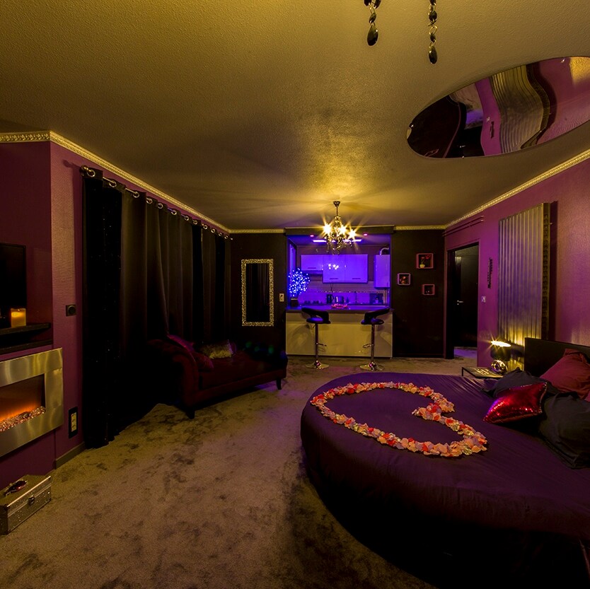 Envie de faire un break dans un endroit cosy et romantique, avec votre moitié.. Vous désirez passer une nuit romantique, faire une demande en mariage, fêter un anniversaire ou la Saint Valentin ou tout simplement vous détendre à deux, alors le Purple Lovt est la love room idéale. Surprendre votre partenaire le temps d'une nuit ou plus. Champagne & petit déjeuner du 1er matin offerts Accès sécurisé en toute autonomie via une serrure connectée. Discrétion assurée alors réservez maintenant