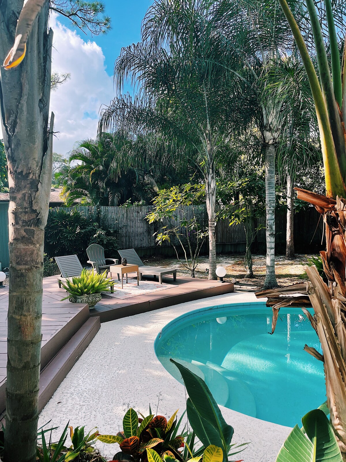 Bienvenue à Raintree House, une oasis tropicale animée sur la côte Treasure de Floride. Cette cabane de style cabane dans les arbres de 3 chambres et 2 salles de bain dispose d'une cour arrière ultra privée avec une immense piscine entourée de palmiers matures. Avec un décor artistique inspiré des années 70, des murs en cèdre et un plan d'étage ouvert, cette résidence est faite pour une escapade relaxante entre amis. Que vous soyez à la plage, que vous exploriez le centre-ville branché de Ft Pierce ou que vous passiez vos vacances au bord de la piscine, Raintree House est le parfait réconfort floridien.