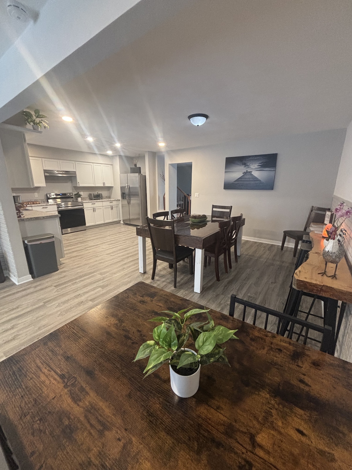 Cette maison lumineuse, spacieuse et entièrement rénovée peut accueillir jusqu'à 8 personnes ! Située à quelques minutes des commerces, des restaurants, du complexe sportif pour jeunes Janesville Youth Sports Complex, de la patinoire Janesville Ice Arena, du centre-ville, des jardins botaniques Rotary Botanical Gardens, du sentier Ice Age Trail et de la rivière Rock River. *Trajet facile vers Madison, Milwaukee, Rockford et Beloit ! Située près des bretelles d'accès I-90/I-39* Cette maison située au centre est idéale pour un grand groupe ou plusieurs familles !