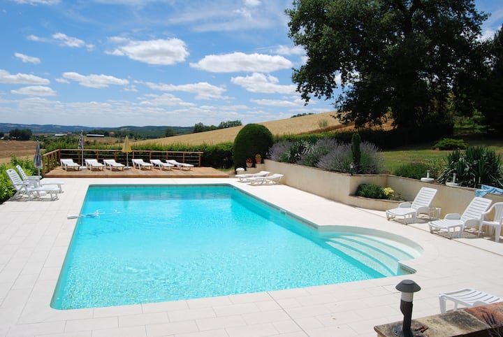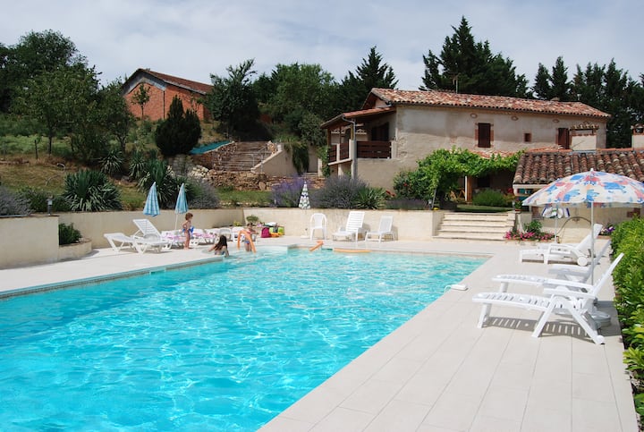 Gite avec piscine au milieu des vignes et bois