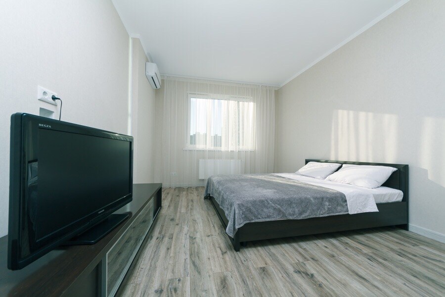 Appartement ensoleillé et chaleureux, entièrement neuf. À la disposition des voyageurs tout ce dont vous avez besoin. La vaisselle de cuisine, les serviettes, les draps, le sèche-cheveux, les appareils ménagers sont tous neufs. L'appartement est situé au centre du quartier de Rusanovka, une île artificielle entourée d'eau. A cinq minutes à pied du remblai de la rivière avec de nombreux restaurants avec une cuisine variée - Italien, Grec, Américain, Européen, un poisson et un petit déjeuner restaurants. Le centre d'exposition (IEC-expo) est à 15 minutes à pied.