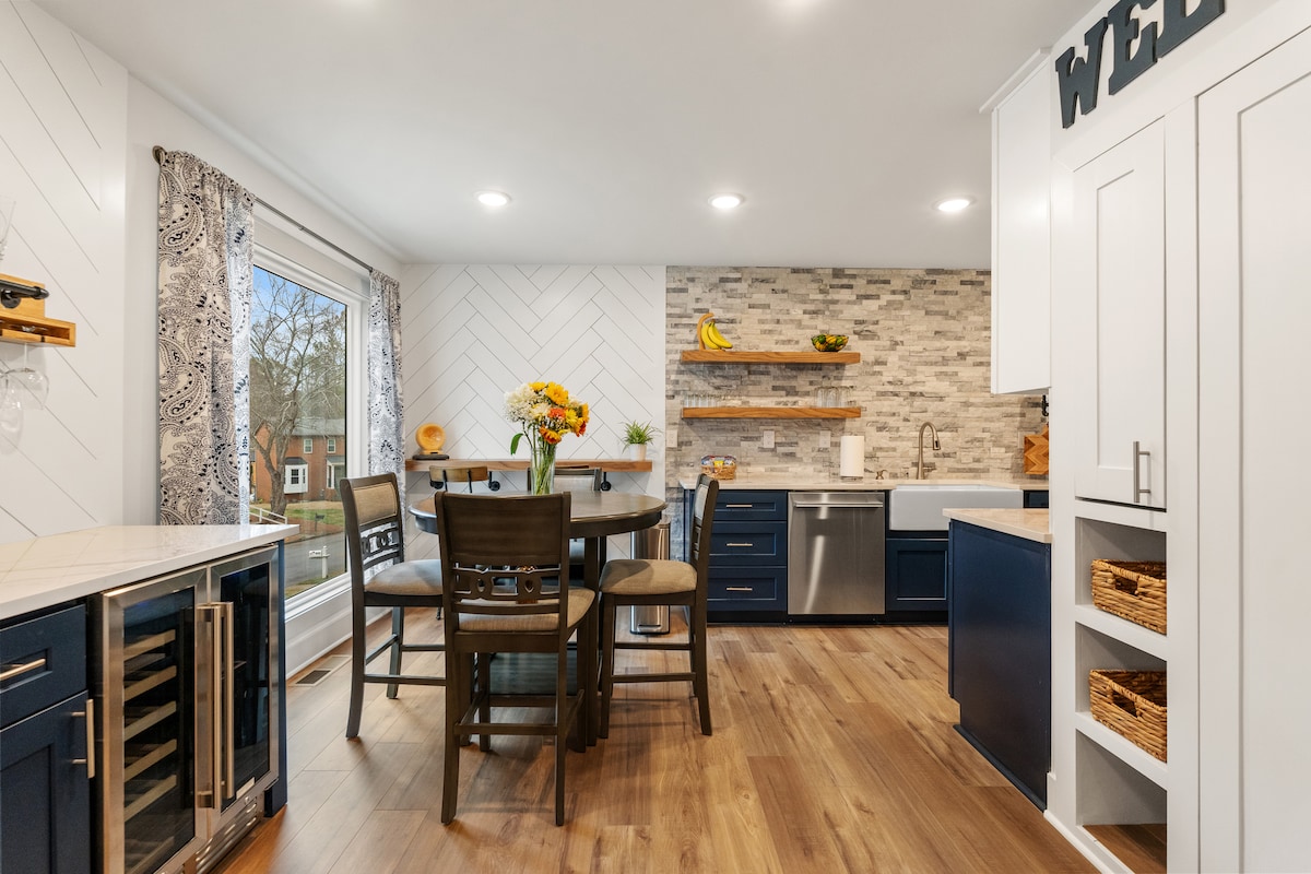 **SÉJOUR MINIMUM DE 2 NUITS** Bienvenue au « Bread & Butter Barn » situé à quelques pas de Canton Street dans le quartier historique de Roswell. Nous sommes la maison la plus proche de Canton Street dans notre rue ! Ce concept de studio ouvert spacieux comprend une cuisine complète, un lave-linge et un sèche-linge empilés, et une abondance de chaleur et de caractère offerts avec l'hospitalité du Sud. L'espace est ouvert et aéré avec de la lumière naturelle et dispose de plafonds à rainure et languette de 10 pieds de haut et d'espaces confortables.